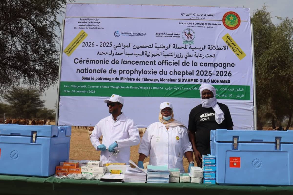 أشرف معالي وزير التنمية الحيوانية، السيد سيد أحمد ولد محمد، رفقة والي اترارزه، السيد احمدنا ولد سيد أب، اليوم الأحد بروصو، على إطلاق الحملة الوطنية لتحصين المواشي 2025/2026.
