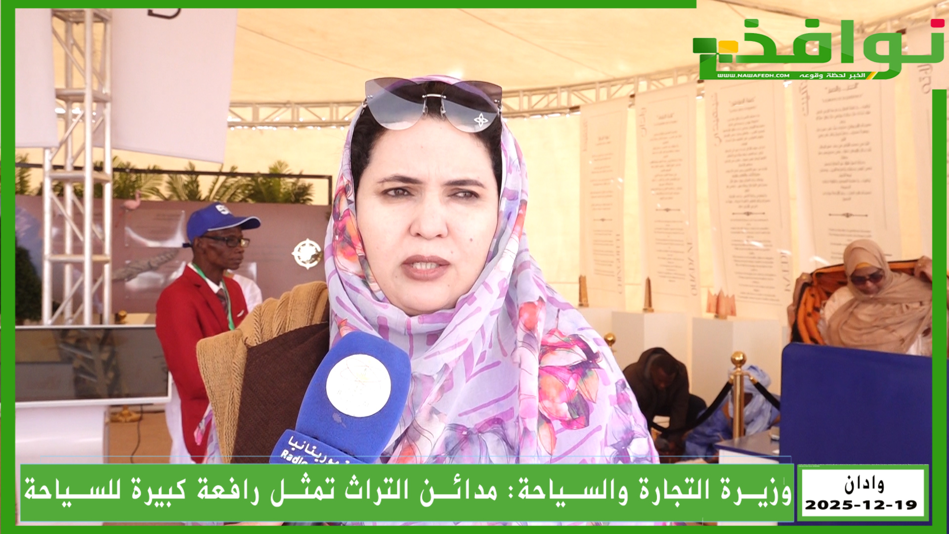 قالت وزيرة التجارة والسياحة زينب بنت أحمدناه إن مهرجان "مدائن التراث" يمثل رافعة كبيرة للسياحة في البلاد. وتحدث الوزيرة في التصريح المرفق عن طبيعة مشاركة قطاعها في نسخة المهرجان 14 التي تحتضنها مدينة وادان التاريخية.