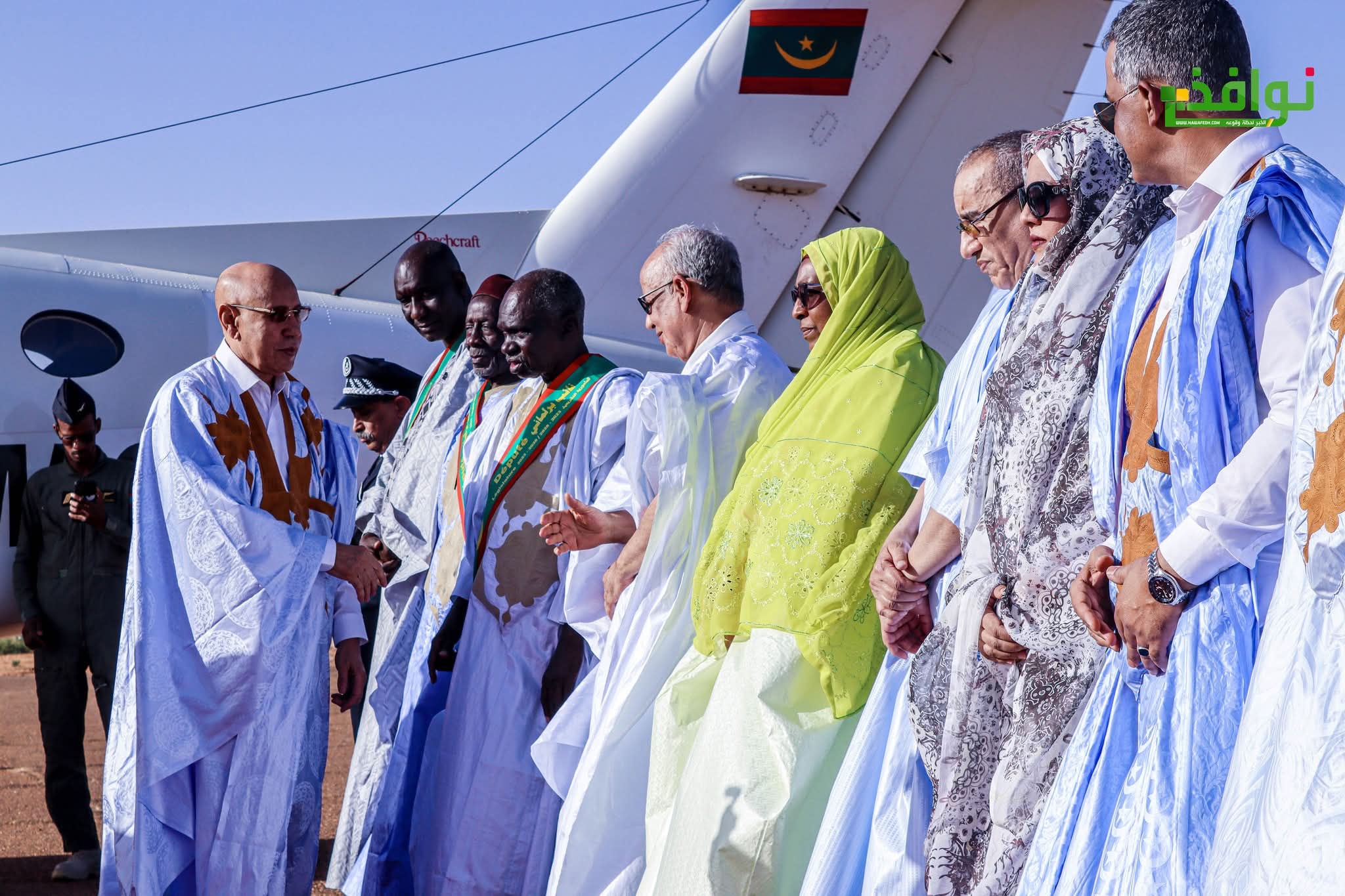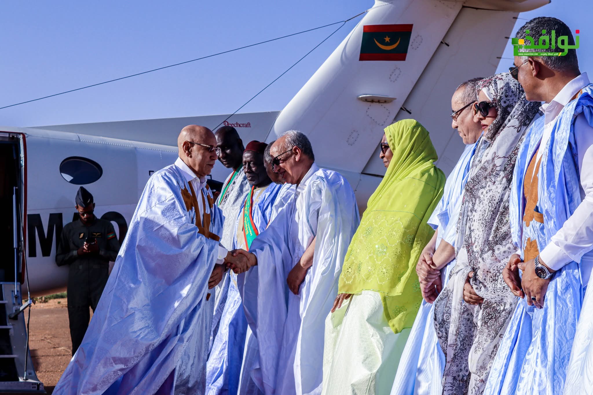 وكان في استقبال فخامة رئيس الجمهورية، عند سلم الطائرة بمطار كيهيدي، والي كوركول السيد محمد المختار ولد عبدي، وقائد المنطقة العسكرية السابعة العقيد عمار احمدو حننا، وحاكم مقاطعة كيهيدي السيد سيدنا ولد زين العابدين، وعمدة بلدية كيهيدي ونواب المقاطعة، وذلك قبل أن يستعرض فخامته وحدات من القوات المسلحة التي أدت له تحية الشرف.