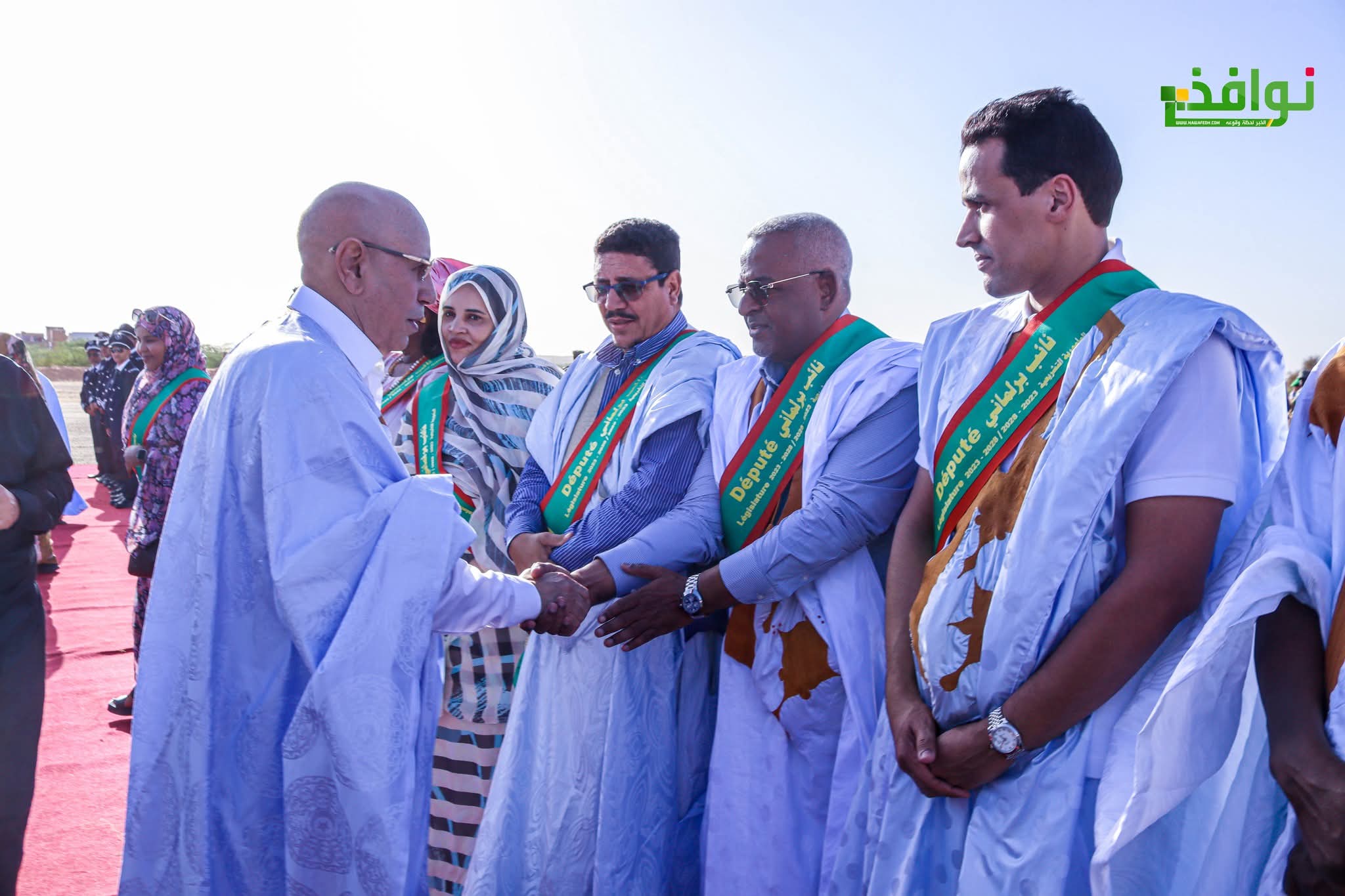 وصافح فخامة رئيس الجمهورية، بعد ذلك، المنتخبين والأطر ووجهاء الولاية، الذين اصطفوا لتحيته.