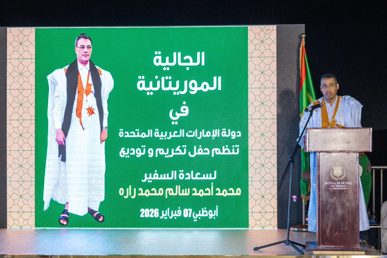 نظمت الجالية الموريتانية في دولة الإمارات العربية المتحدة مساء السبت الموافق 07 فبراير 2026 بالعاصمة أبوظبي حفل وداع فاخر ومهيب للسفير محمد ولد أحمد سالم ولد محمد راره.