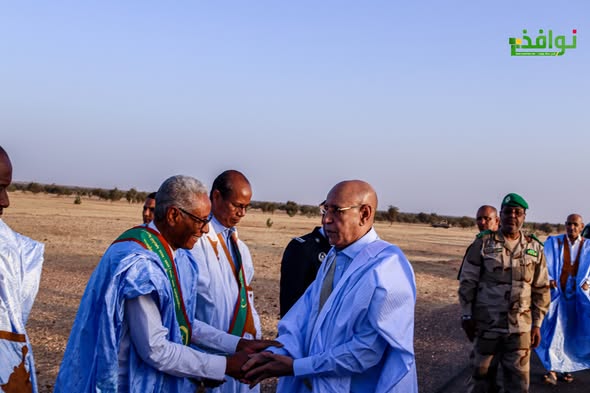 وكان في استقبال رئيس الجمهورية، الذي يرافقه والي كوركل السيد محمد المختار ولد عبدي، كل من قائد المنطقة العسكرية السابعة العقيد عمار أحمد حننه، وحاكم مقاطعة مونكل السيد محمد الأمين محمد عبد الرحمن، وعمدة بلديتها السيد باب أحمد ولد أعل ولد ابراهيم، ونائبي المقاطعة لحبيب ولد أجاه، وسيدي ولد غابر، وعمد بلديات المقاطعة.